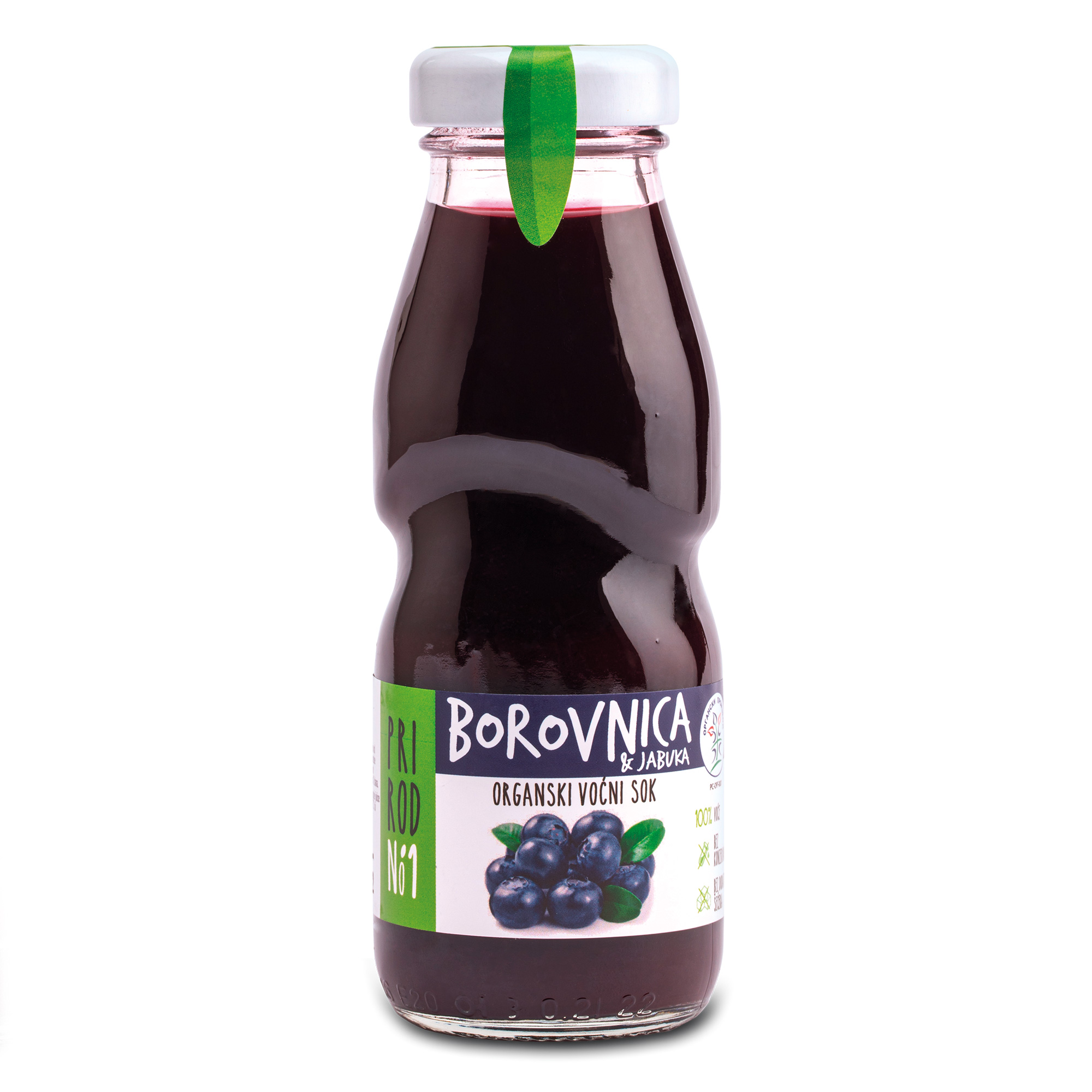 - Borovnica je većini sokova često prisutna u tragovima (3-10%), dok ostatak čini voda, šećer i jabuka. Ovde je borovnica dominantna (51%) i to u obliku kaše, što znači da dobijate i vlakna i punu teksturu ploda, a ne samo obojenu vodicu.
